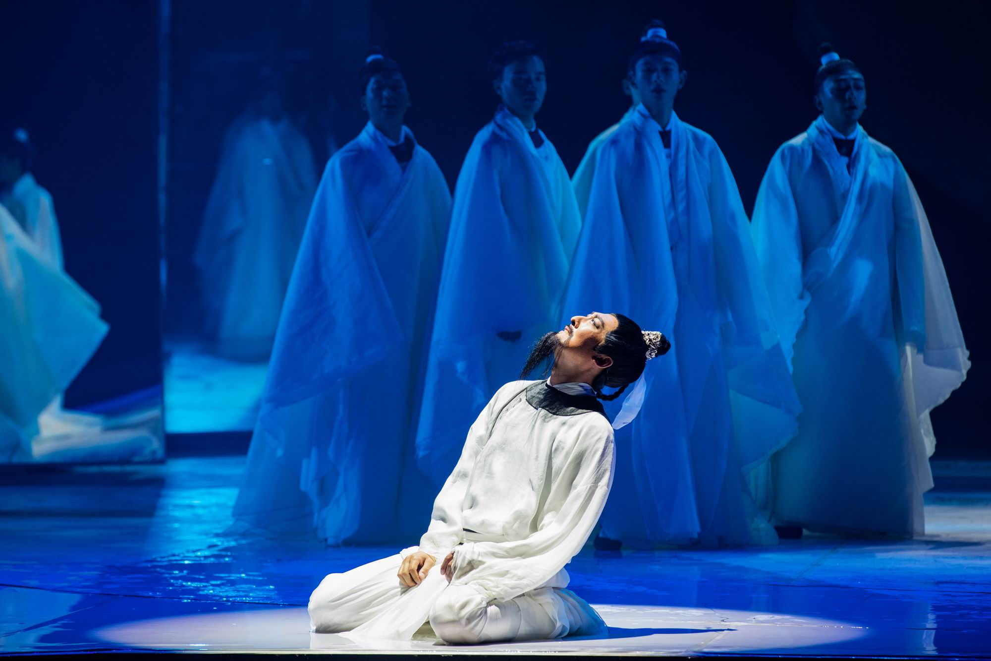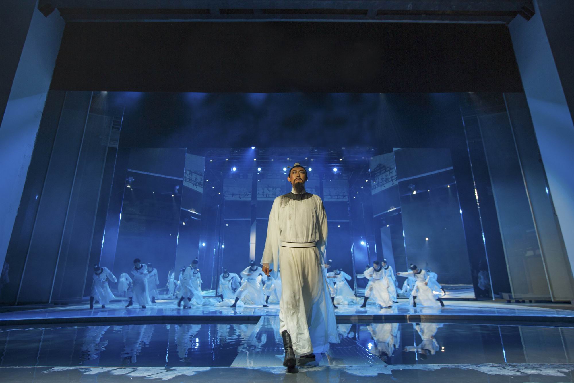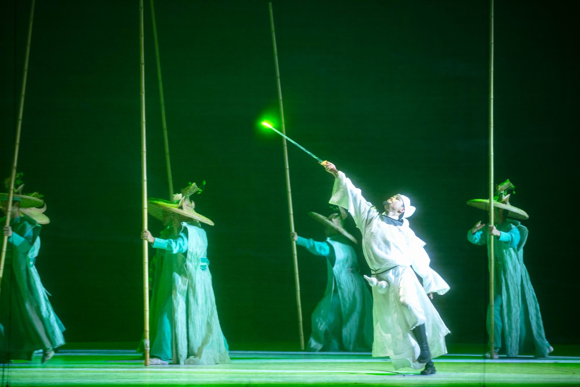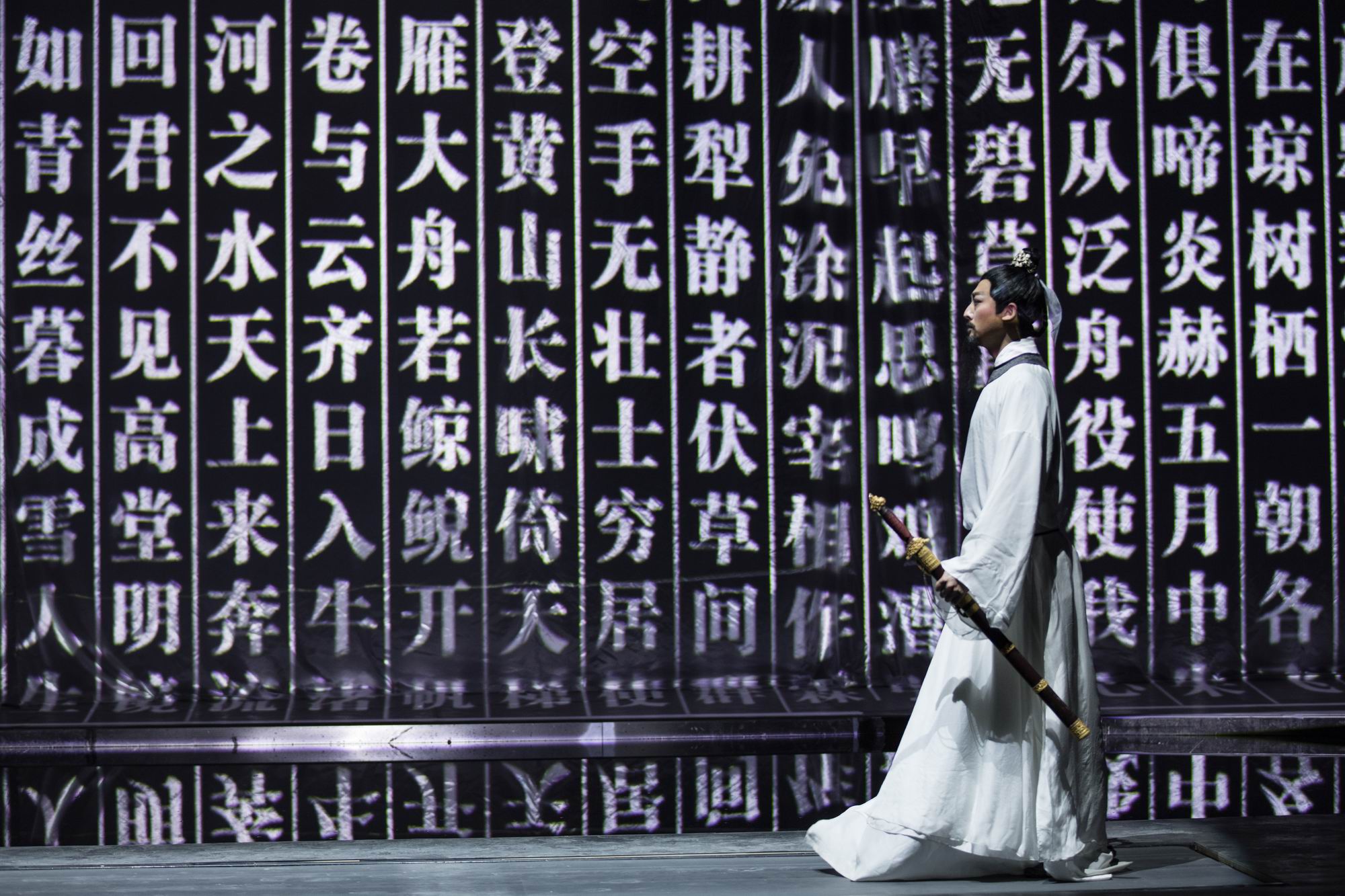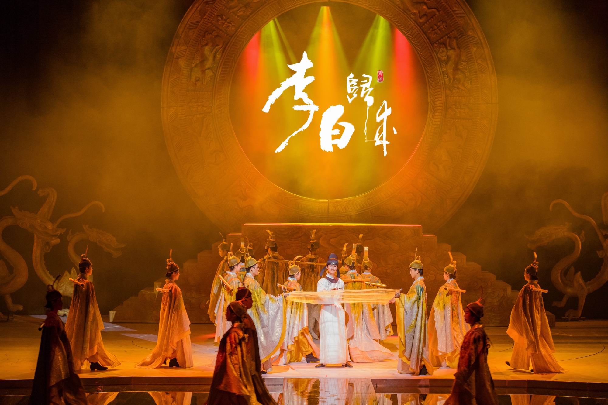 大型幻景人文詩舞劇《李白歸來》用詩意的方式,讓不同生命階段的李白——十二、謫仙人、翰林、青蓮相遇,以永恒行走的“李白”來貫穿,演出融入了李白《將進酒》《蜀道難》《靜夜思》《俠客行》《清平調(diào)》《夢游天姥吟留別》等經(jīng)典詩篇、名句,并將故鄉(xiāng)清境、辭親遠游、長安行俠、縱情山水、翰林書寫、醉游仙境、矢志報國的人生歷程詩化為一場尋找夢想的行走。
